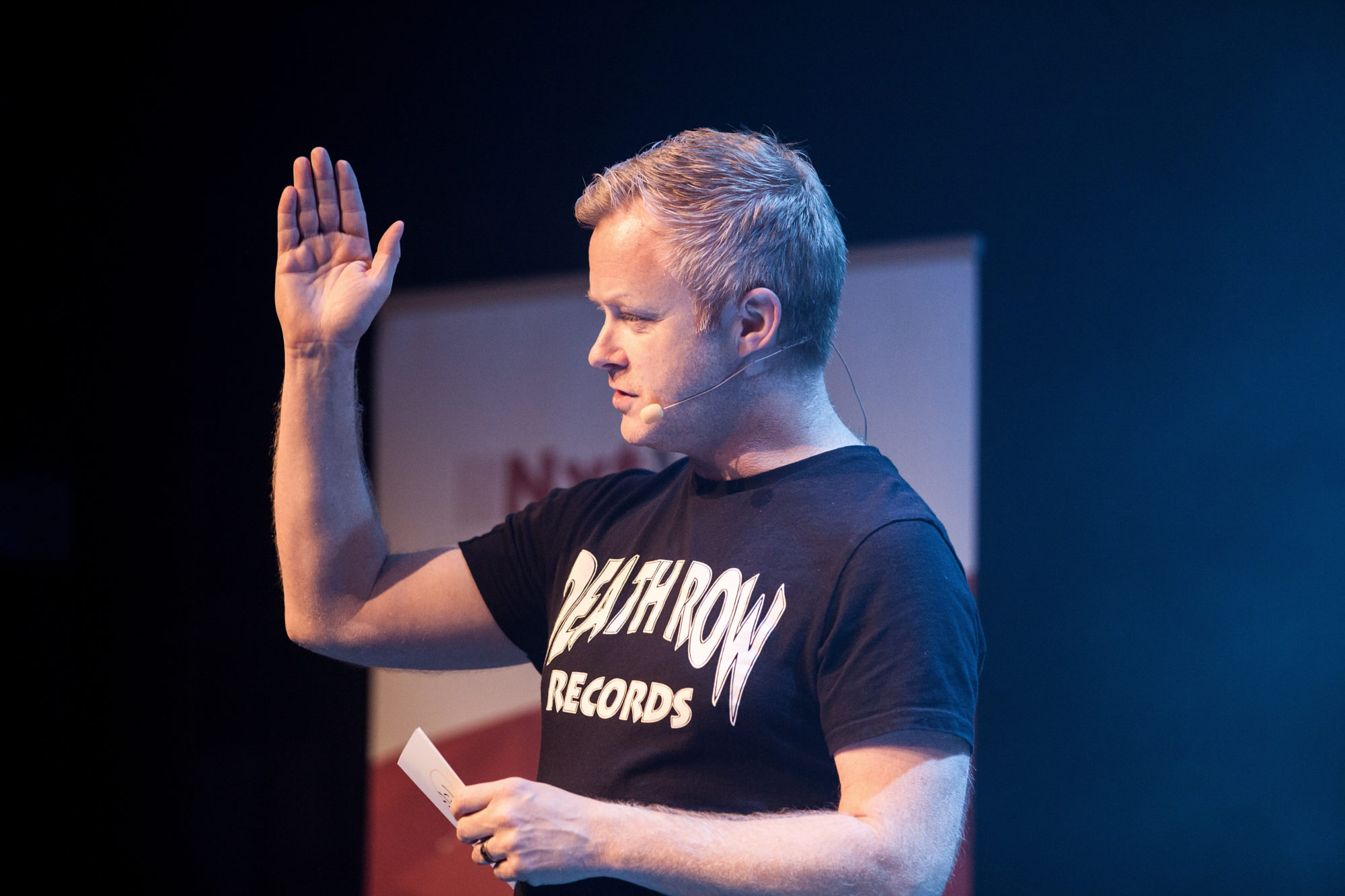 Etter åpningsnummeret til The Fjords’ Petter Vågan, var det Juan Señor som startet begivenheten. Han er en av de store stjernene på verdens konferansearenaer der mediefolk møtes – hvorfor viste han på Rockheim.